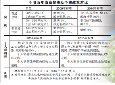2010年则对达不到自住型与改善型的两类购房人没有任何补贴。郭宏定指出,综合省里的优惠政策,明年在南京购买普通住房,如非首次也非改善必须缴纳1%的契税。高档房的补贴也被停止,一律缴纳3%的契税。