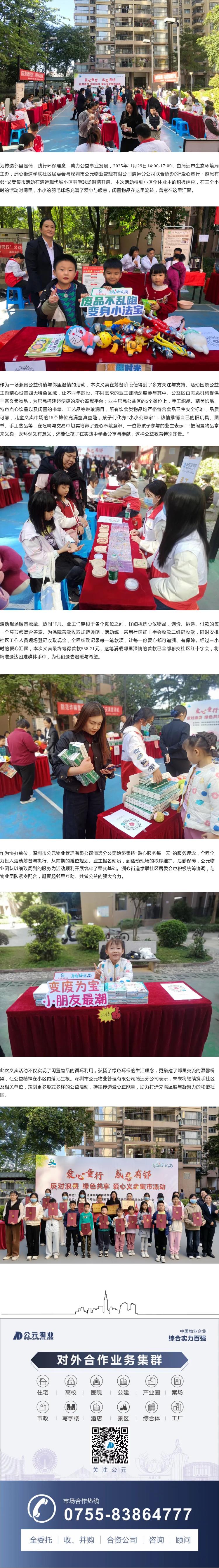 “爱心童行 感恩有邻”——公元物业清远现代城小区开展义卖活动