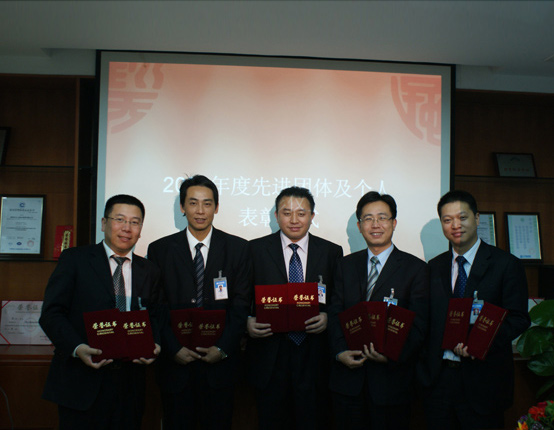 会上各分公司领导和总部职能部门负责人与张万和董事总经理签署了2009年度目标责任书。随后,徐斌副总经理宣读了《关于表彰2008年度优秀团体及先进个人的决定》。公司各位领导为获奖的团队和个人颁发了荣誉证书和奖金,并与获奖同事合影留念。
