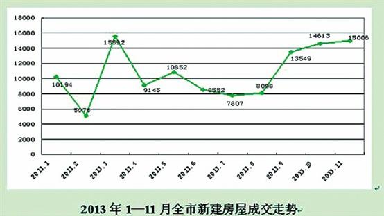 据市房地产开发管理局统计,与去年相比,今年销售面积、房价继续呈现增长趋势。1-11月份,新建商品房销售面积953.6万平方米,同比增长22.9%。而根据青岛网上房地产统计数据显示,截至昨天下午5时,全市新建住宅销售量已达117947套,这一数字比去年全年总销售量还增加了两万余套。