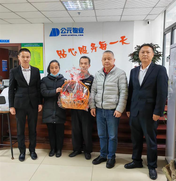 失主何小姐为了感谢物业服务中心工作人员的拾金不昧精神,特意送来锦旗及水果表示感谢,感谢黎金华的拾金不昧精神,并高度赞扬了公元物业凤城世家团队,感言有良好的团队氛围才能带出素质优秀的员工。