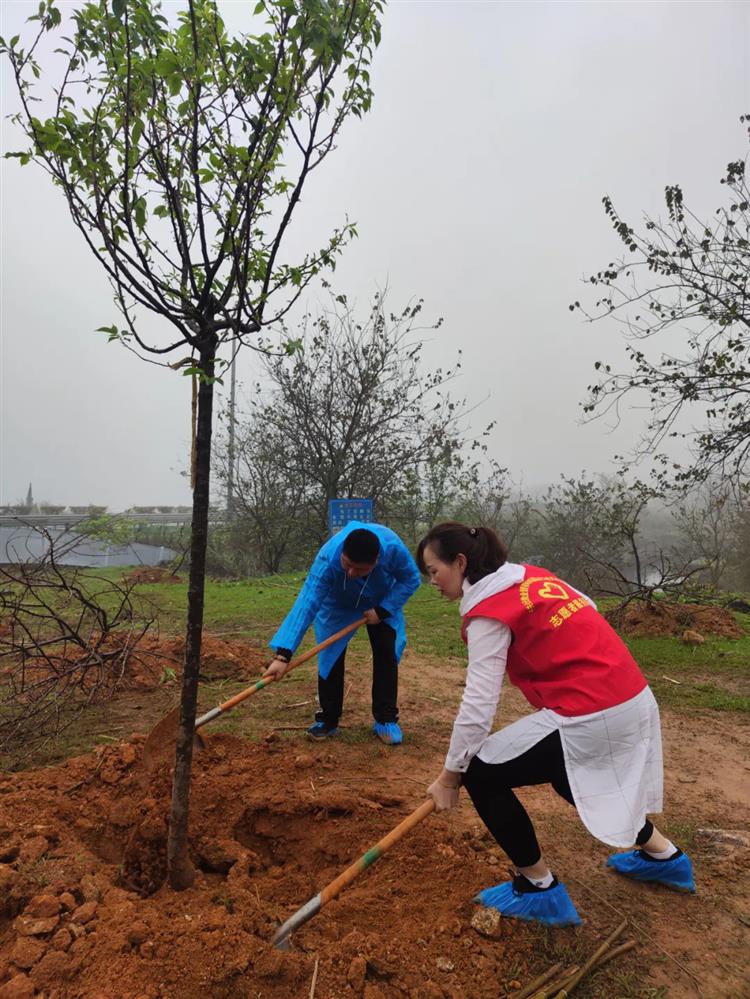 经过两小时的努力,一棵棵小树苗,昂然挺立,在春风中迸发勃勃生机。一个个忙碌的身影、一株株挻拔的树苗勾勒出一幅青春活力、绿意盎然的美好画卷。