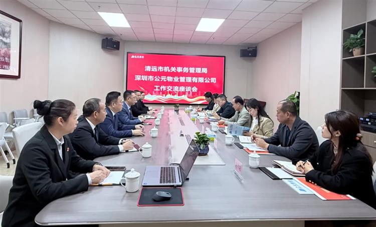 2025年11月19日,清远市机关事务管理局林树乔局长、刘军副局长、王志强副局长等一行领导莅临深圳市公元物业管理有限公司清远凤城世家参观指导、共商发展,并召开工作交流座谈会。公元物业闵安总裁及相关职能负责人共同参会,双方围绕党建工作、品牌建设、智能化管理、团建创新等内容展开深入交流。
